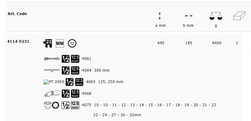 - Các socket size: 10mm – 11mm – 12mm – 13mm – 14mm – 15mm – 16mm – 17mm – 18mm – 19mm – 20mm – 21mm – 22mm – 23mm – 24mm – 27mm – 30mm – 32mm.