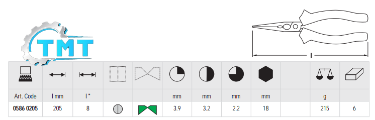 Kìm mỏ cong 45o 205mm Matador 0586 0205